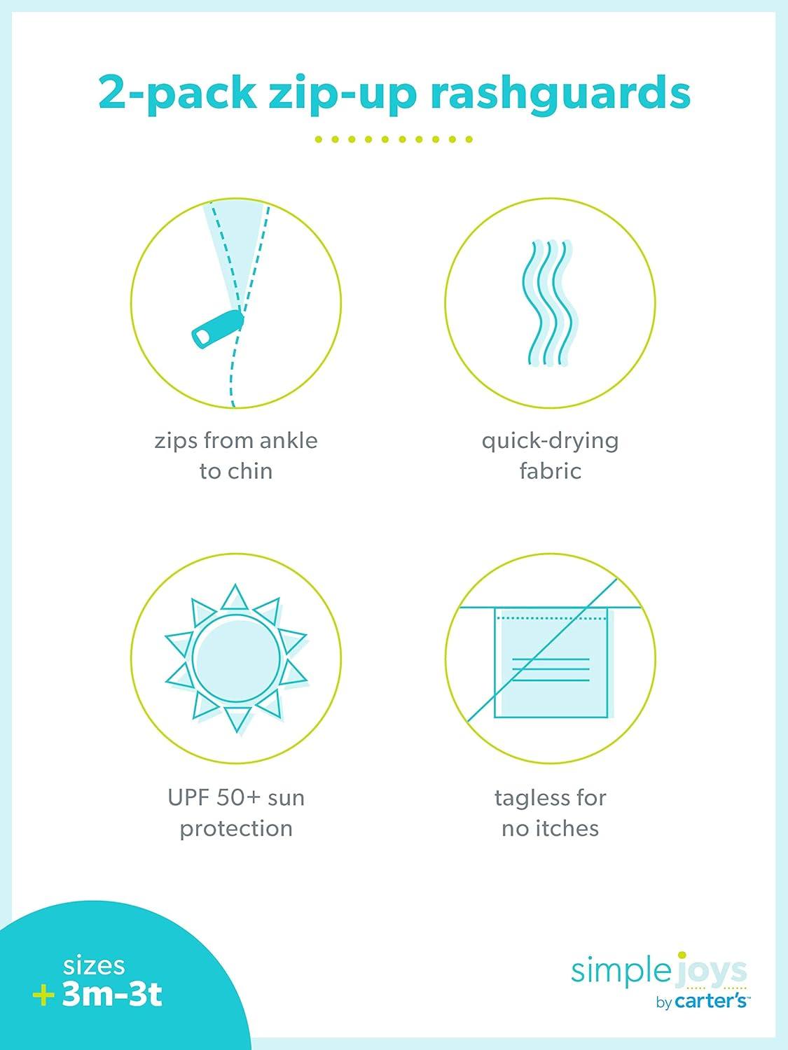 Simple Joys by Carter’s Baby-Boys 2-Pack 1-Piece Zip Rashguards(Blue/Red)