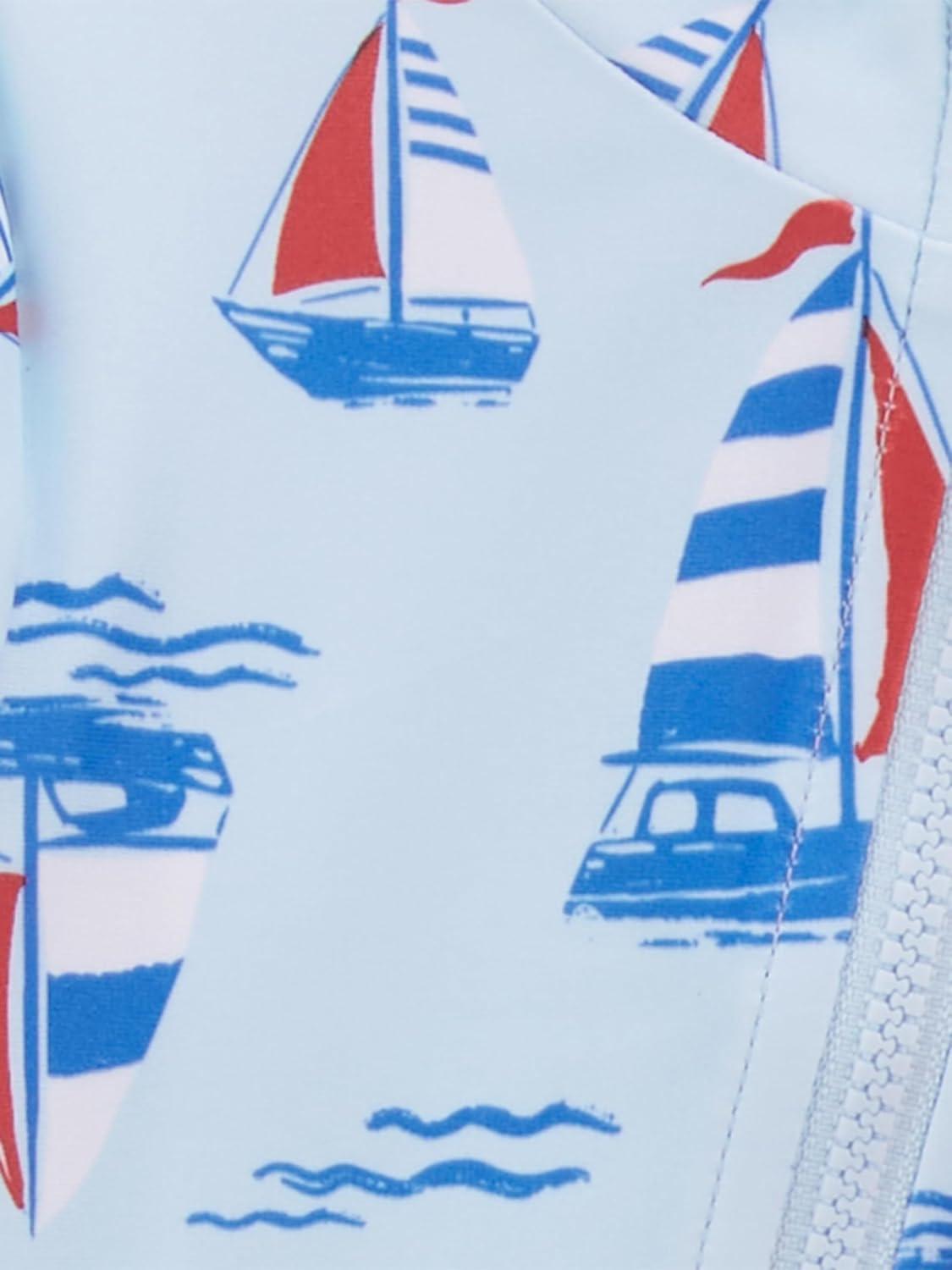 This 2-Pack One-Piece Long Sleeve Zip-Up Rashguard Swimsuit for Boys from Simple Joys by Carter’s combines comfort, protection, and playful style for the ultimate summer gear. Designed with fun, vibrant prints and colors, it will keep your little one excited for every swim. The UPF 50 rating offers excellent sun protection, ensuring that they stay safe from harmful UV rays while enjoying the outdoors. Featuring a full zip closure for easy on-and-off, this swimsuit provides a snug fit with added convenience. The long sleeves provide extra coverage, making it perfect for days at the beach, pool, or any water activity. Whether splashing around or lounging under the sun, this rashguard swimsuit is the ideal choice for active boys who love to make a splash!