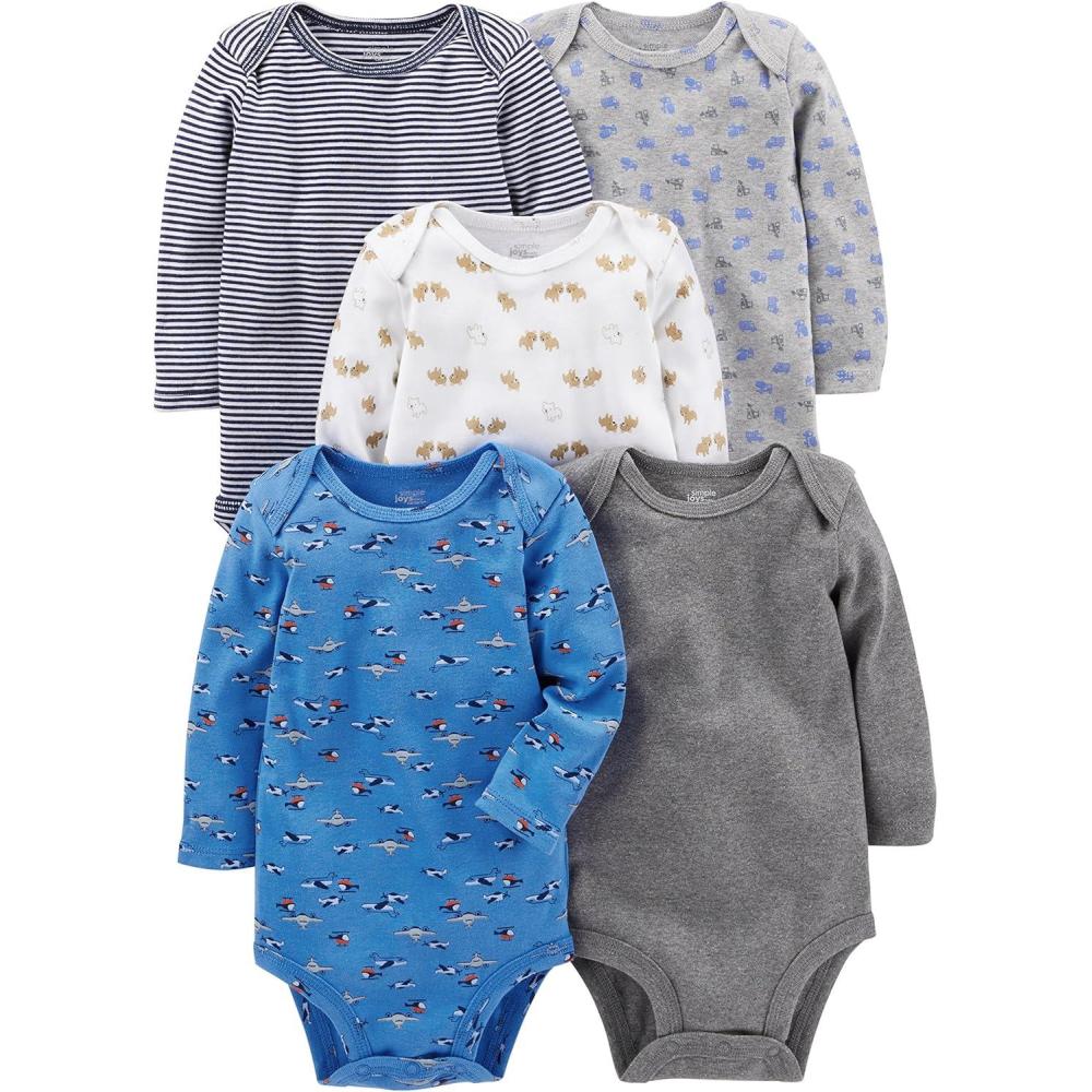 The Simple Joys(tm) by Carter's 5-Pack Long-Sleeve Bodysuit is just the pack to get a new mom started. *Sold as an 5-pack.* ,Round neckline with long sleeves. Three-snap crotch closure.