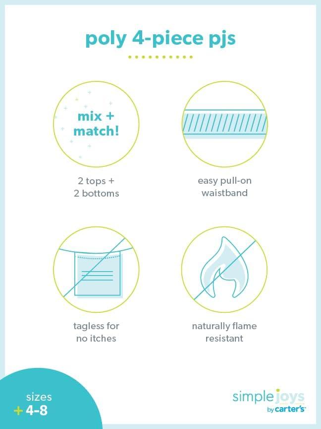Make bedtime fun with mix + match pjs! This set is made with lightweight, flame resistant polyester to keep your little one safe night after night.