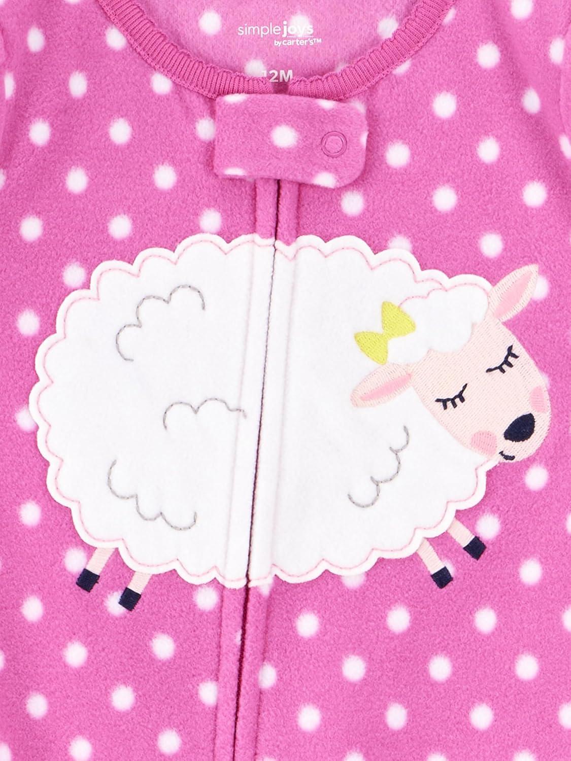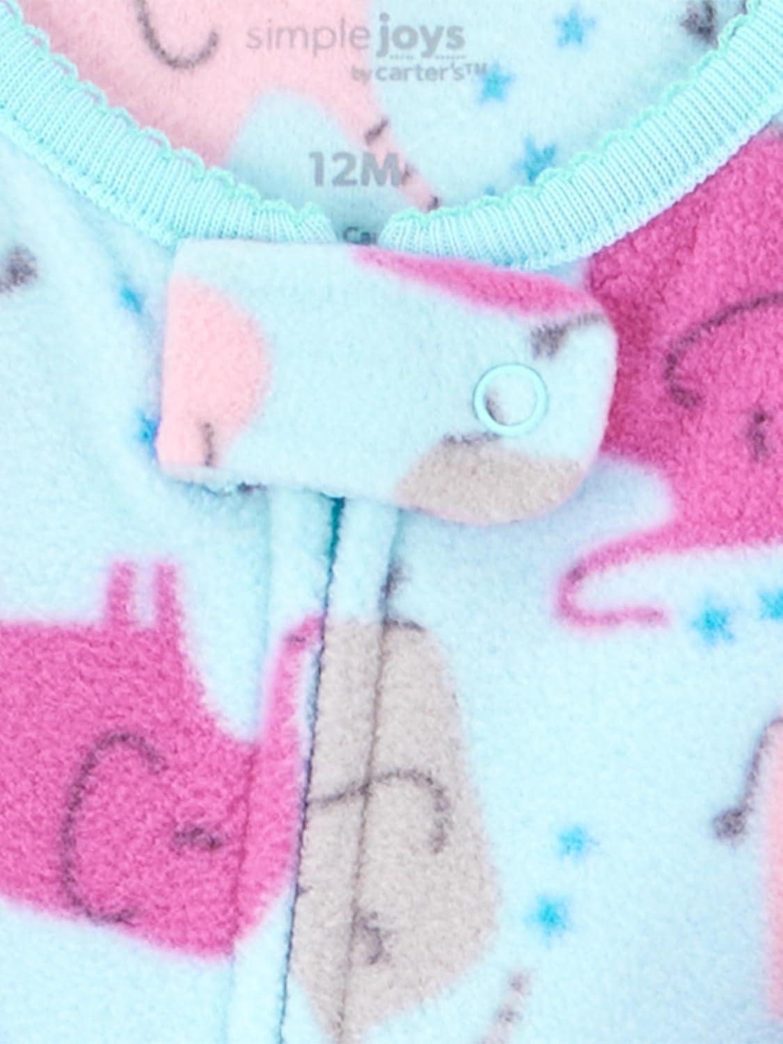 Simple Joys by Carter's girls Loose-Fit Flame Resistant Fleece Footed Pajamas(Blue Elephant/Navy Monster/Pink Dots)