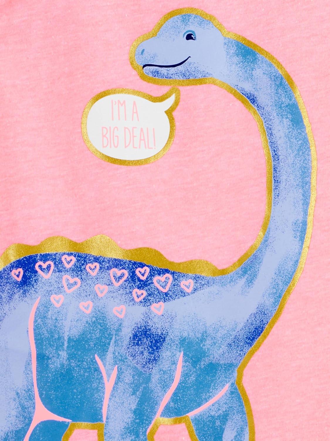 Simple Joys by Carter’s Girls Short-Sleeve Shirts and Tops, Pack of 3(Grey Hearts/Pink Dinosaur/White Text Print)