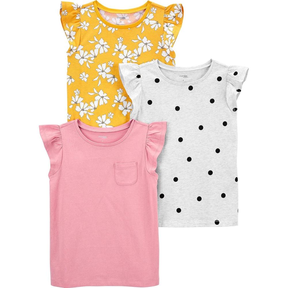 Simple Joys by Carter's Girls Short-Sleeve Shirts and Tops, Pack of 3(Grey Polka Dot/Pink/Yellow Flowers)