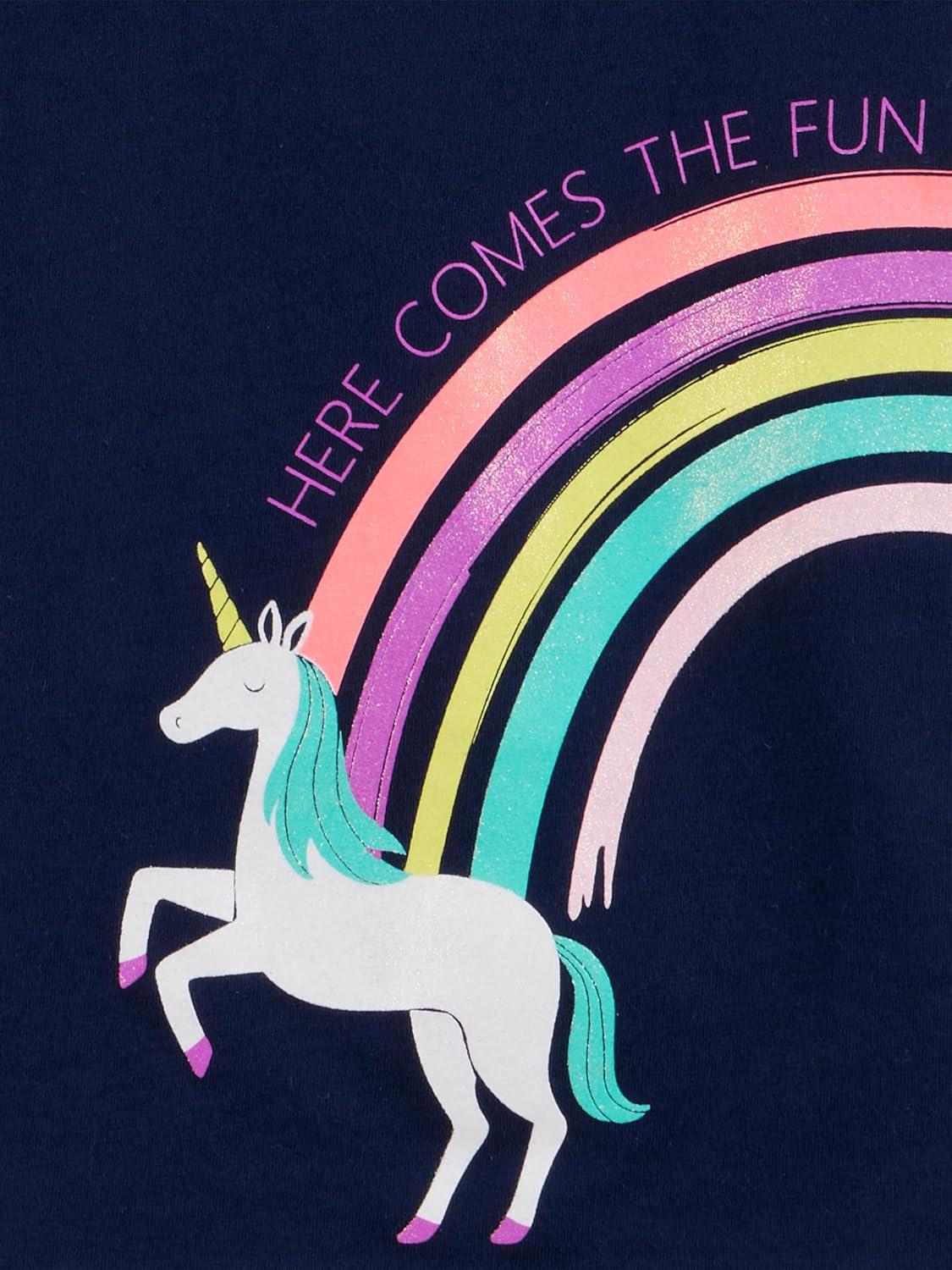 Simple Joys by Carter’s Girls Short-Sleeve Shirts and Tops, Pack of 3(Grey Rainbow/Light Orange Mixed Print/Navy Unicorn)