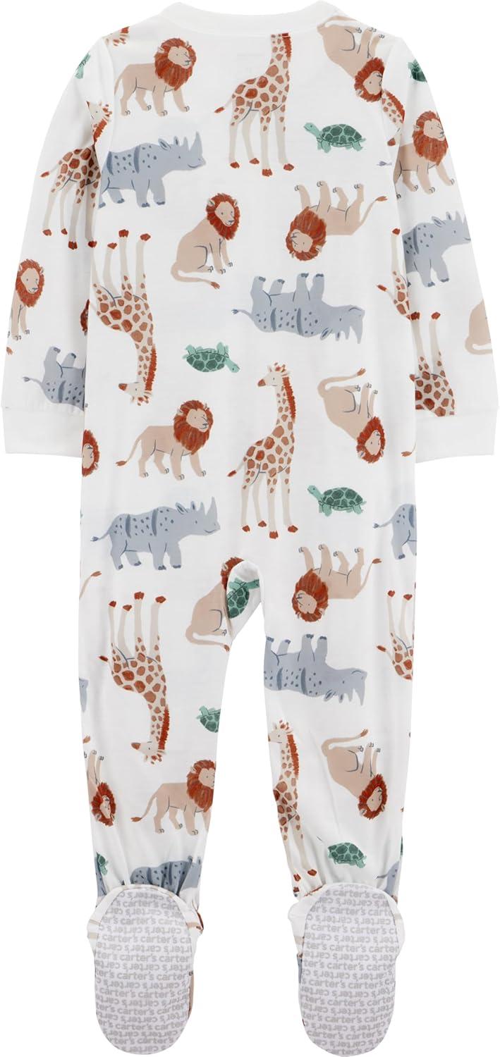 A three-pack of colorful long-sleeve footed pajamas featuring playful prints and ankle-to-chin zippers for easy changes.