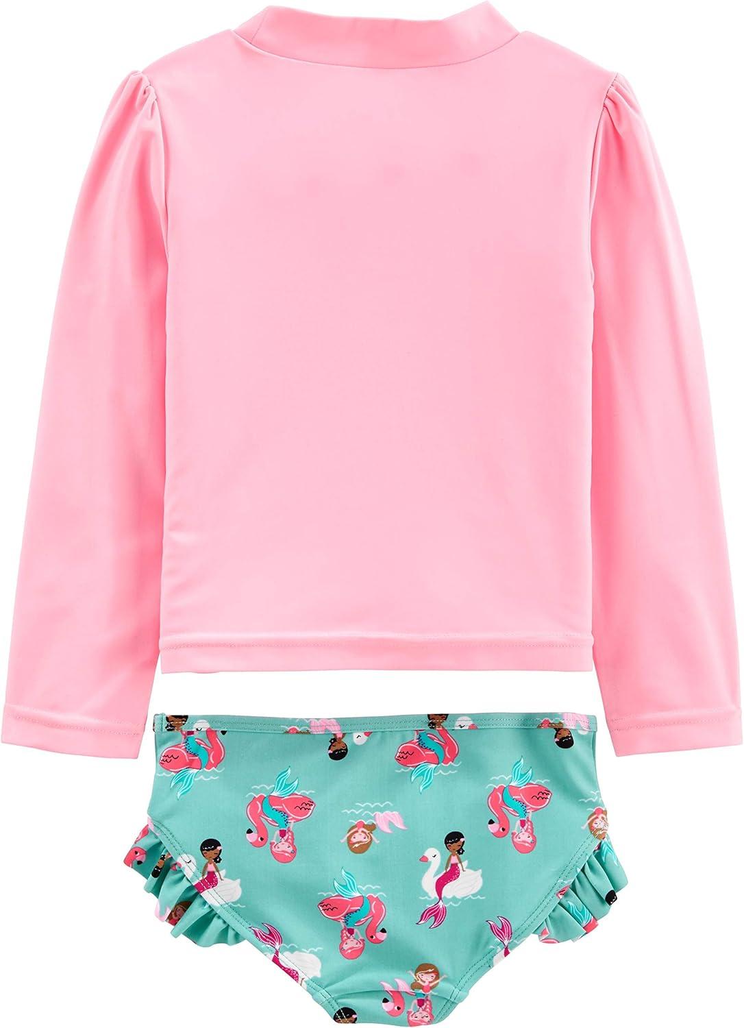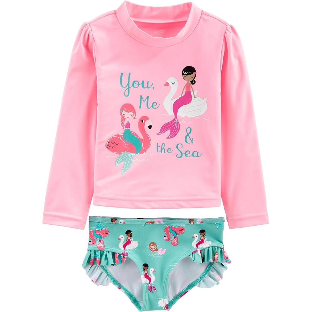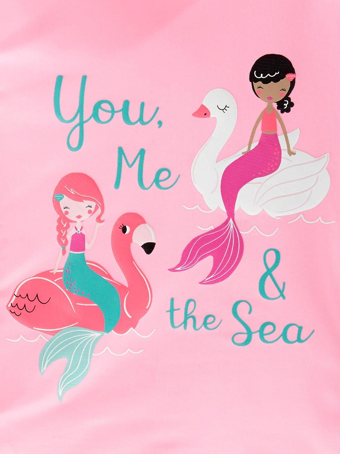 Simple Joys by Carter’s Toddlers and Baby Girls’ 2-Piece Assorted Rashguard Sets(Aqua Green Swan/Pink Mermaid)