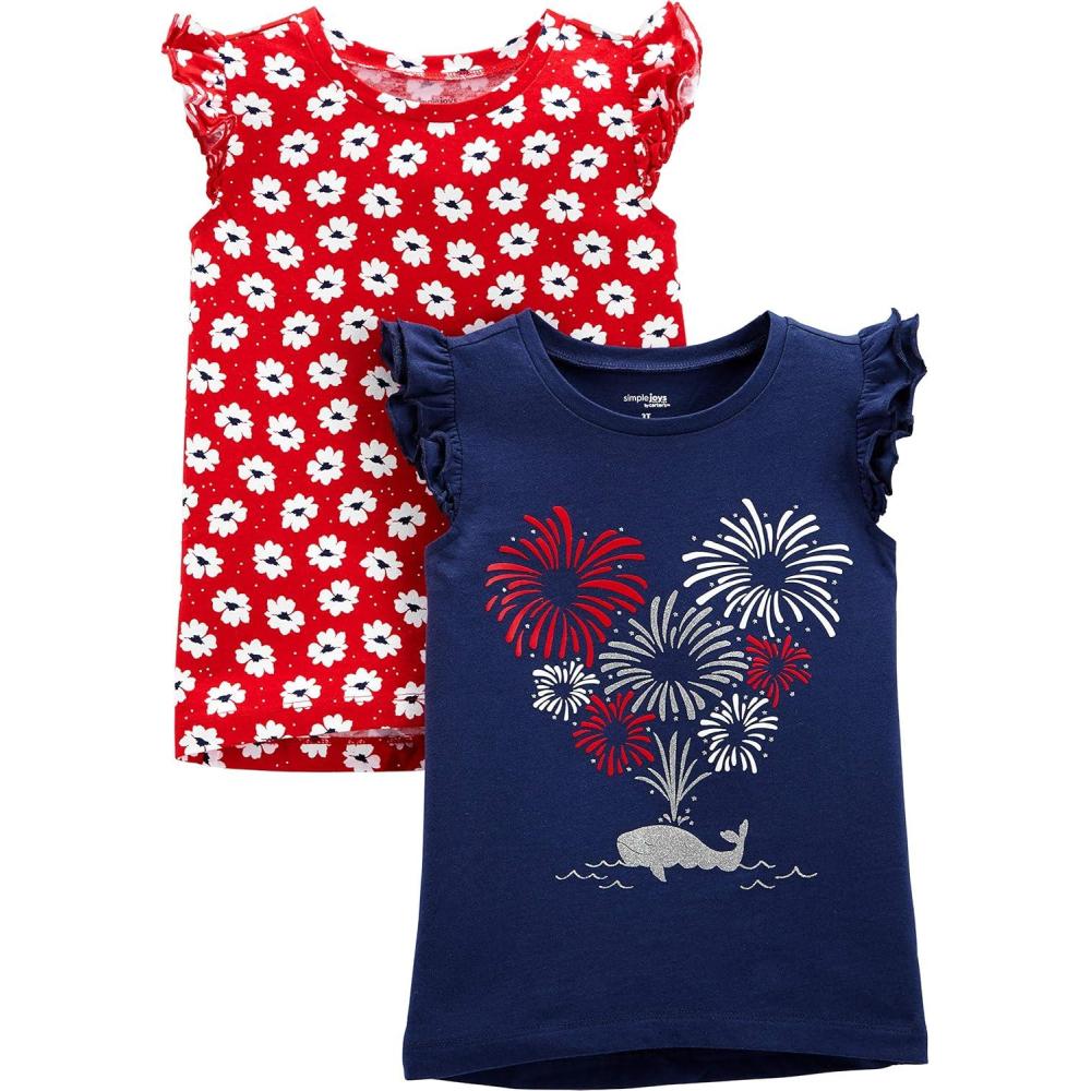 Simple Joys by Carter’s Toddlers and Baby Girls’ Short-Sleeve Shirts, Multipacks(Floral/Fireworks)