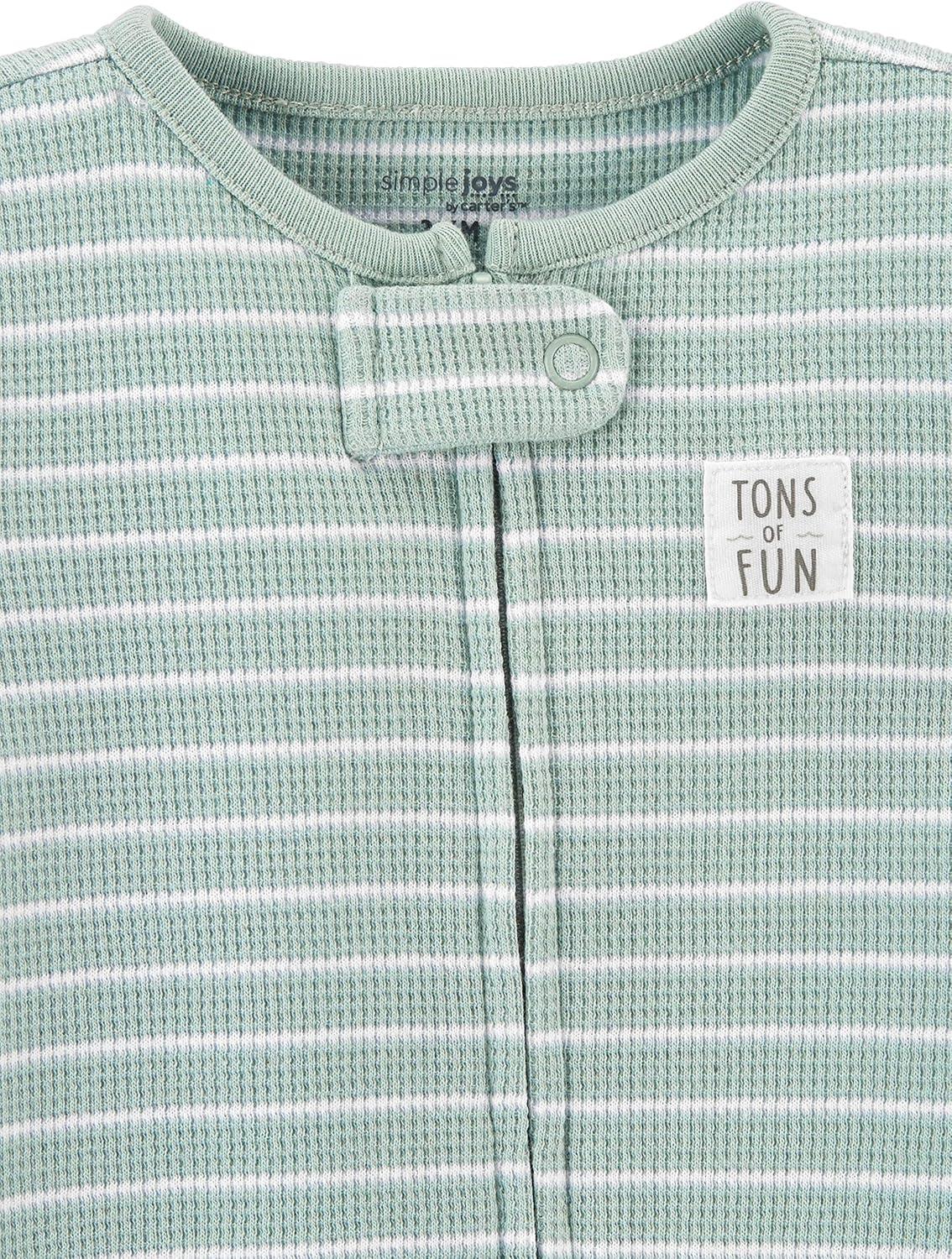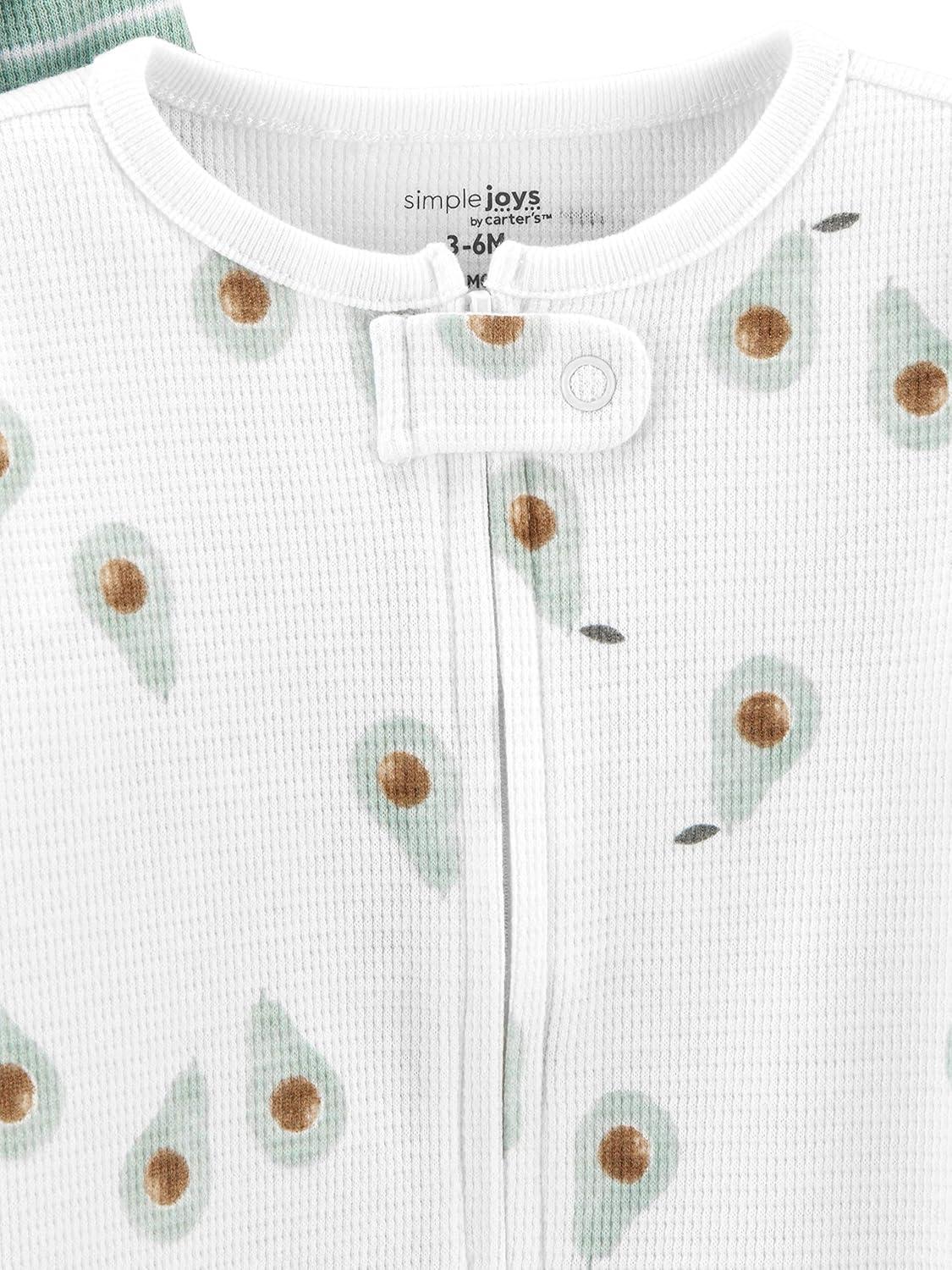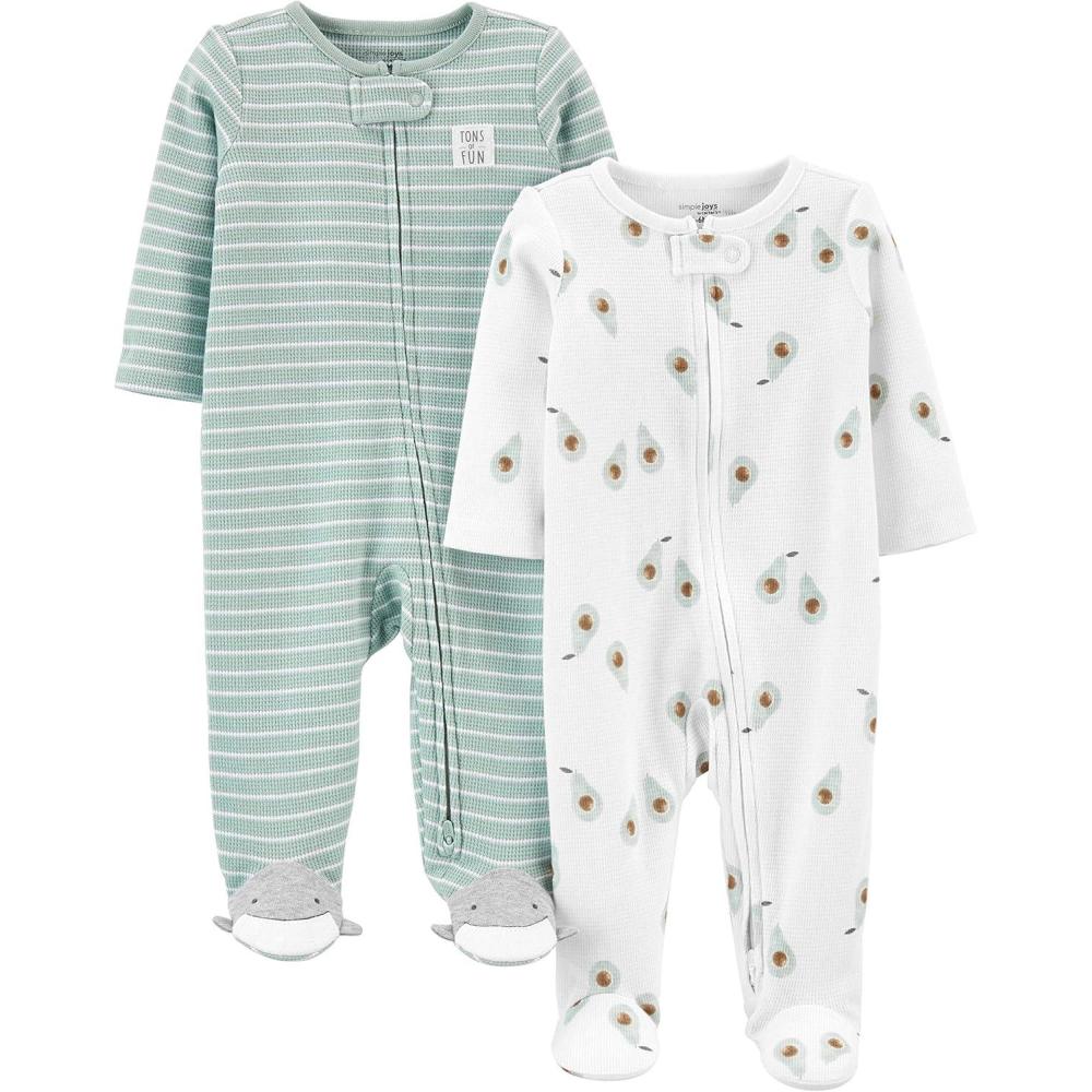 Simple Joys by Carter’s unisex-baby 2-way Zip Thermal Footed Sleep and Play, Pack of 2(Mint Green Stripe/White Avocados)