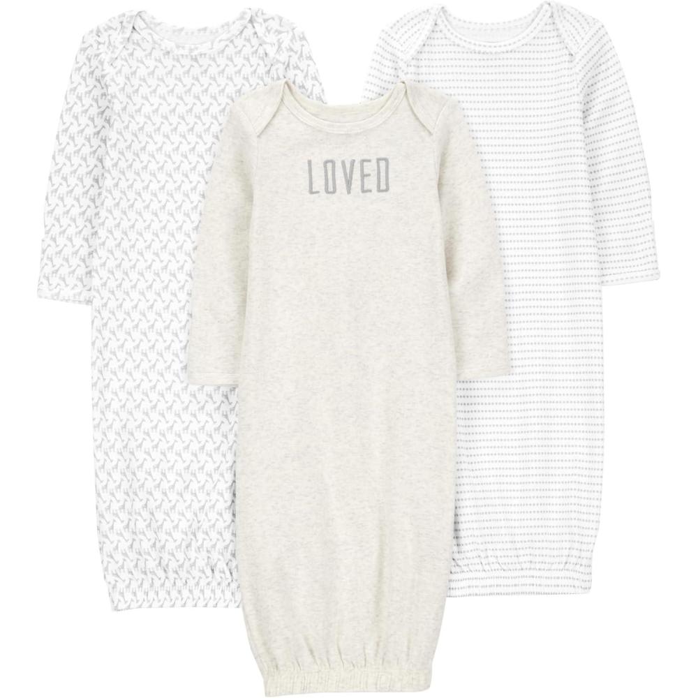 Simple Joys by Carter’s unisex-baby 3-pack Neutral Cotton Sleeper Gown(Grey/White)