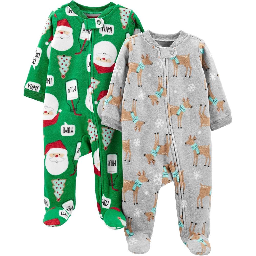 imageSimple Joys by Carters unisexbaby In 2pk Fleece Snp Santa TreesGreen SantaGrey Heather Reindeer